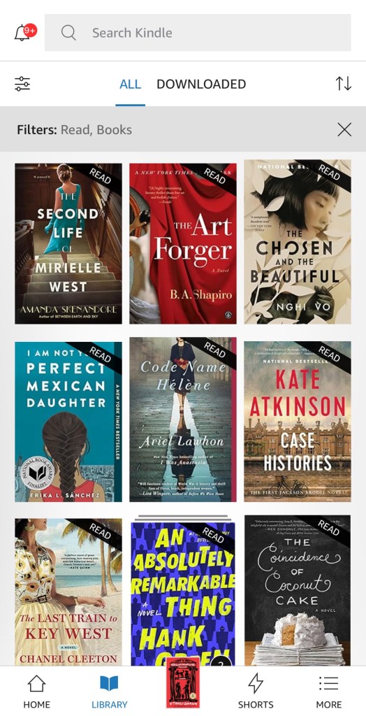 Oh, how I wish I could just read hardcover books in coffee shops all day long. But, alas, that is not my life. Unless I’m flying solo on a plane across the country, there is no way I can get through a hardcover in a timely manner these days. (And who even has the space for a hardcover on a plane?) So, how am I actually getting through all the books? The fastest way for me is to read the same book in multiple formats. Sometimes I have the same book in the paperback, audio, or e-reader versions. I may buy a book in one format and then see if another format is available via my local library. It really helps if I have a version on audio or e-reader. I listen while I’m doing stuff around the house or I can read on my phone via Kindle if I find myself waiting at an appointment or at my son’s practice. Here are a few books I’ve read on my Kindle!