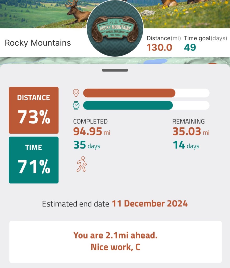 I walked 75.6 miles this month which puts me at 492.6 miles for the year. I’ve been tracking my mileage since 2008 and I’ve never surpassed 500 miles in a year, so that will be a major milestone for me when I (hopefully) hit it in December!