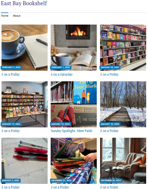 Writing: It was rocky there for a few weeks, but I still posted weekly content here. I’m forever just trying to show up. You can visit the East Bay Bookshelf home page to see prior weekly content.