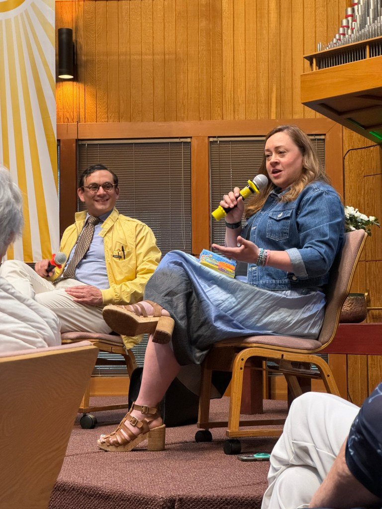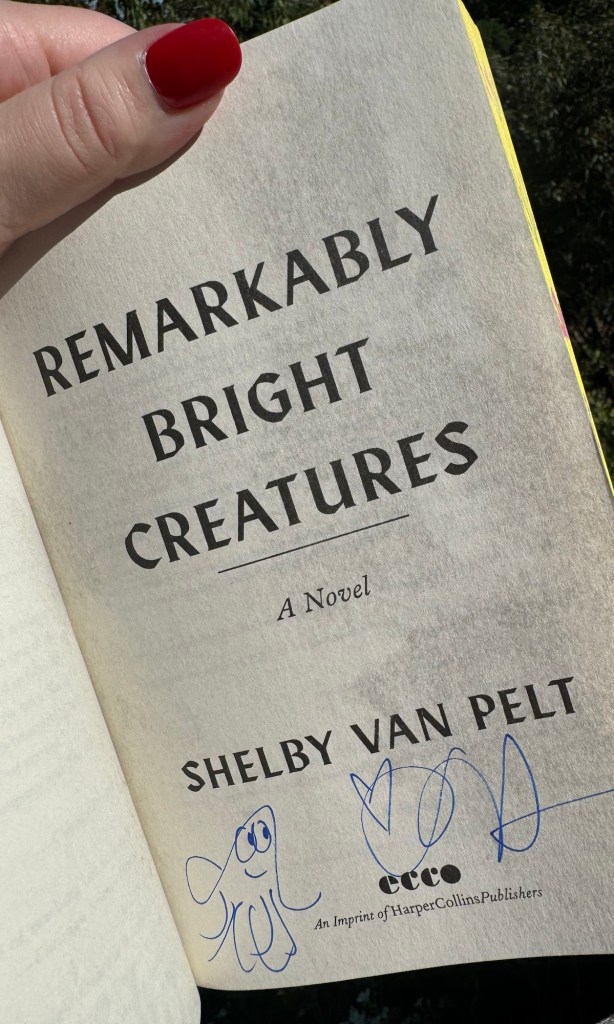 Last week I had the opportunity to attend Rakestraw’s event to celebrate the paperback publication of Remarkably Bright Creatures by Shelby Van Pelt. Simon Van Booy (Sipsworth) asked Shelby to read a few pages from the book to kick things off – I loved the chapter she chose from the point of view of Marcellus, the octopus. This was her debut novel, so she told us about her transition from spreadsheets to writing in Starbucks to going down YouTube rabbit holes – finding videos of naughty octopuses. She answered questions about the movie and how the decision to cast Sally Field was made, which made me tear up a little!
