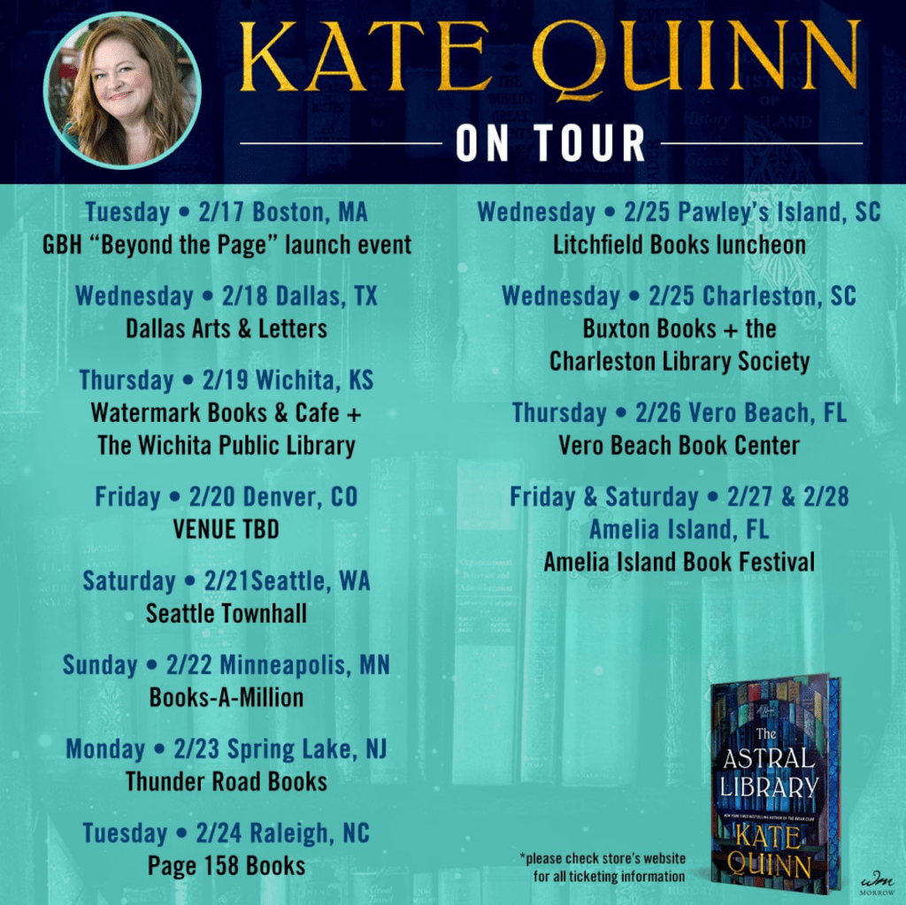 Mark your calendar: The Astral Library by Kate Quinn is set to be released on February 26, 2026.